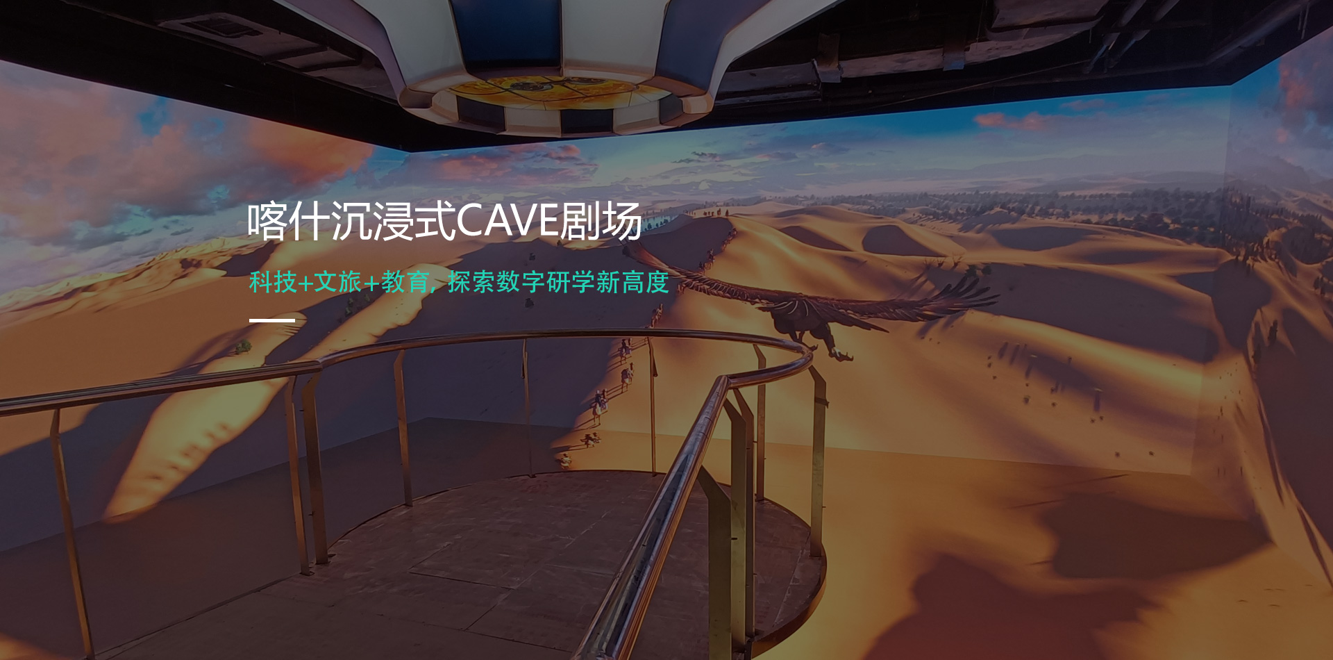 项目落地于喀什市青少年科学教育活动基地,以沉浸感、科教性、艺术性作为内容设计的核心,结合沉浸式的飞行体验展示,通过CAVE沉浸式剧场体现喀什的地貌和气候特征,还原特色鲜明的南疆风情。融入科普性的文字介绍,让孩子们在获得丰富体验感的同时寓教于乐。